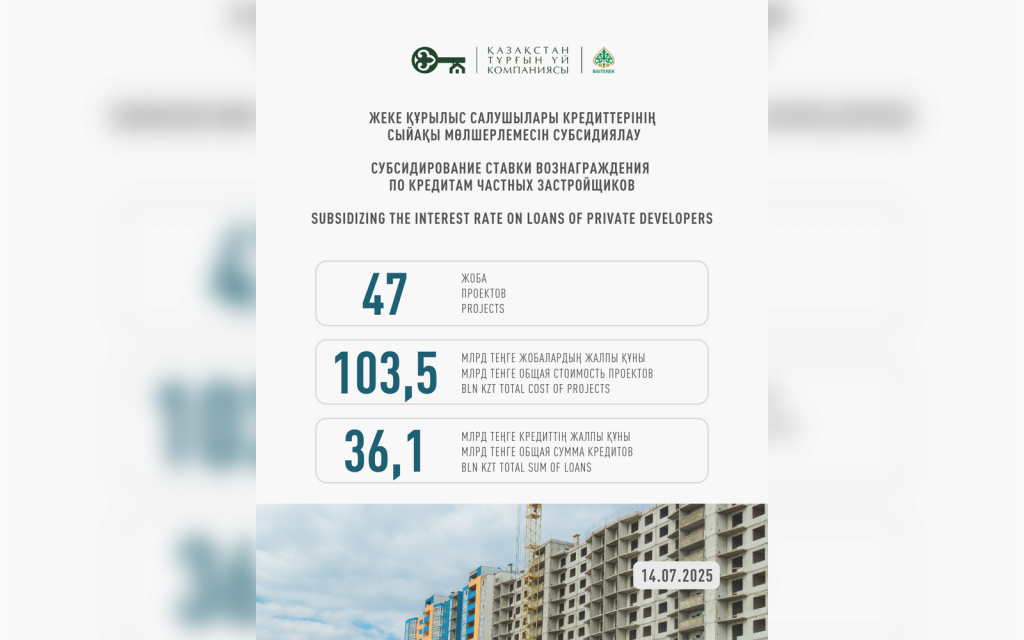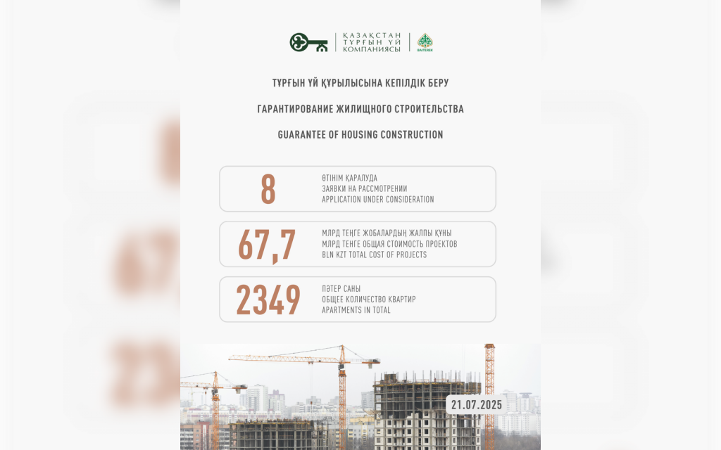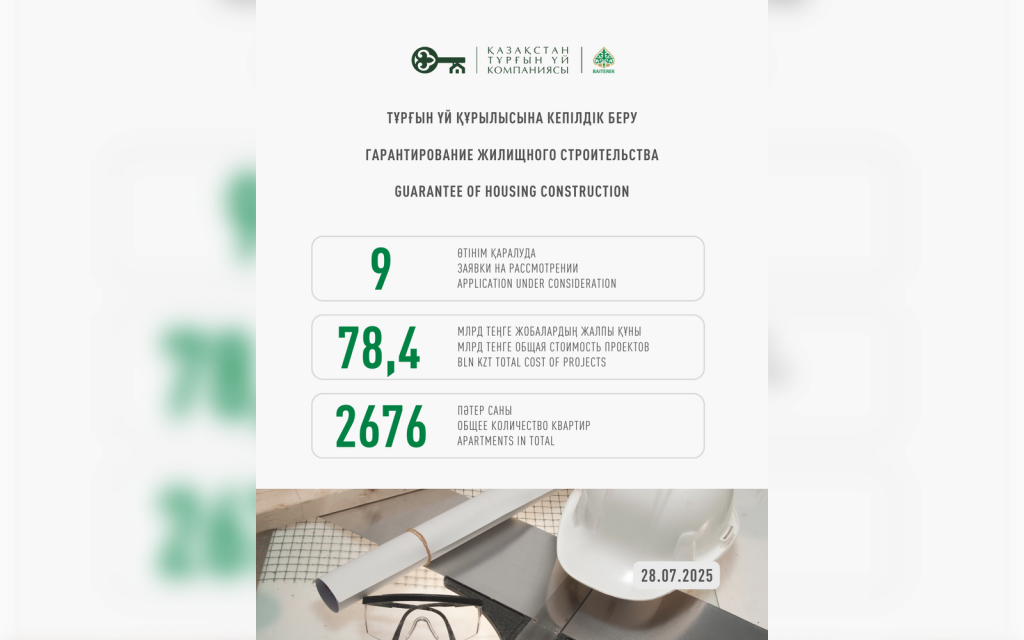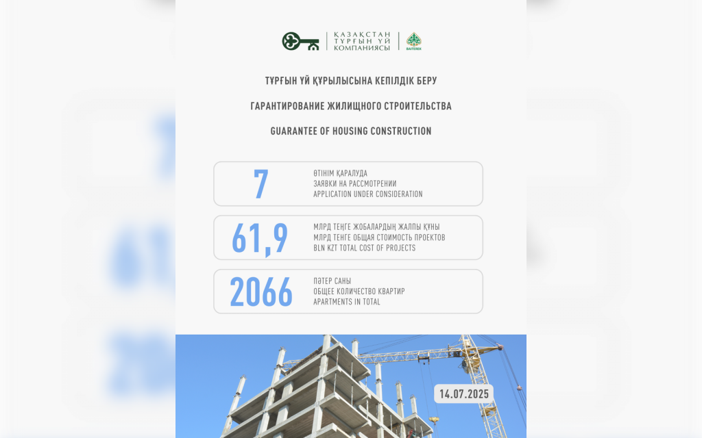 The Single Housing Construction Operator is considering 6 application for projects with a total cost of about 40,6 billion tenge, with a total number of apartments – 1713 apartments. Information on current guarantees is available on the Internet resource www.khc.kz in accordance with the requirements of the Law of the Republic of Kazakhstan “On co-funding …