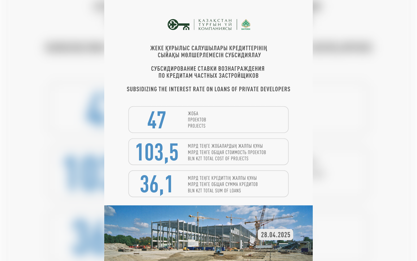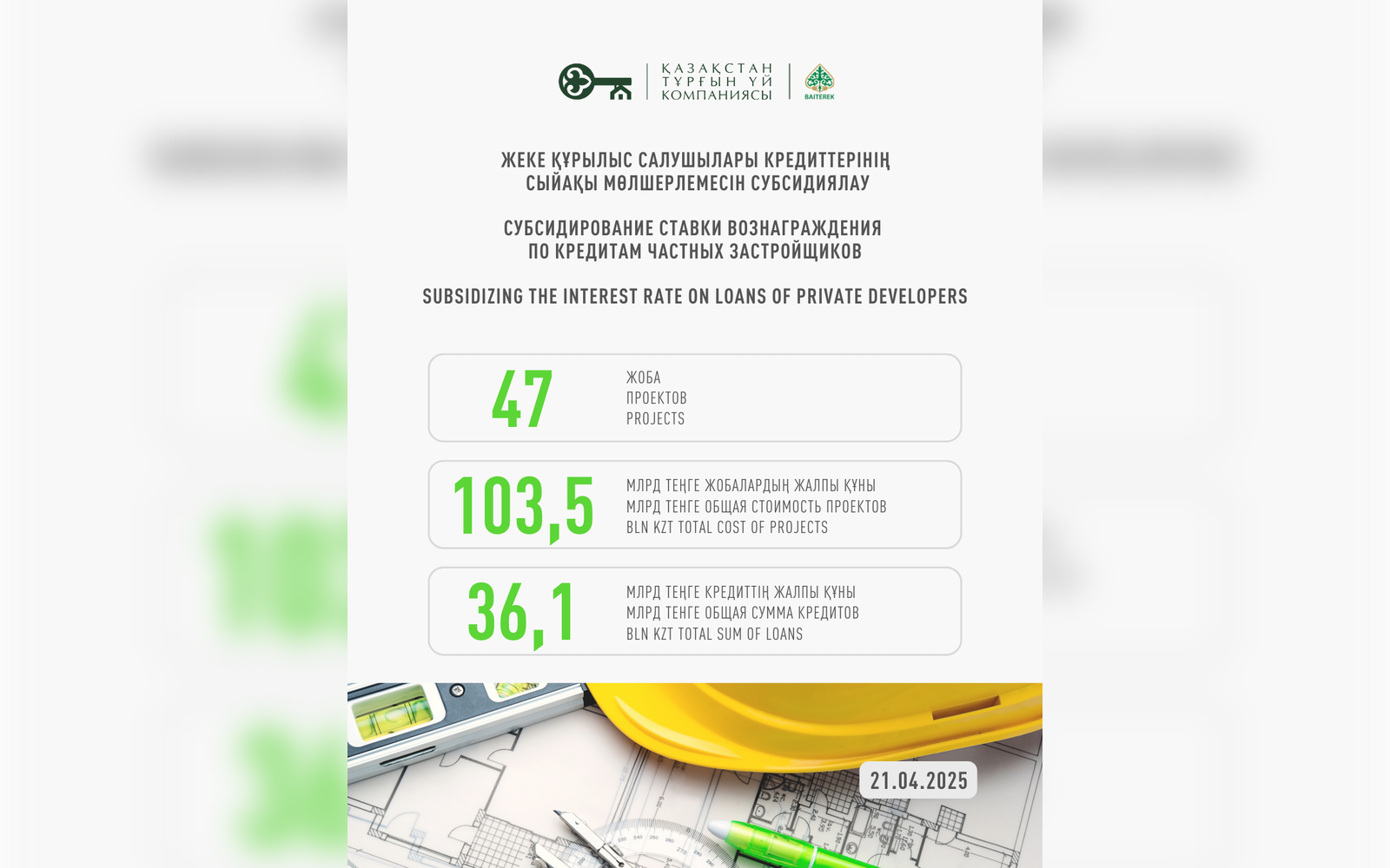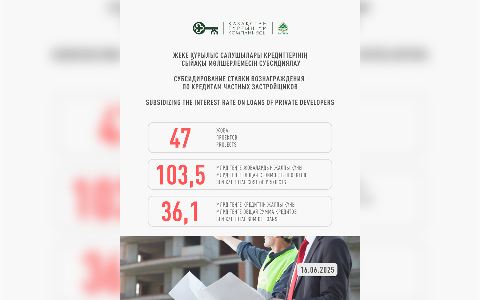 2) АО «Казахстанская Жилищная Компания» объявляет о запуске нового механизма финансирования проектов комплексной застройки территорий.