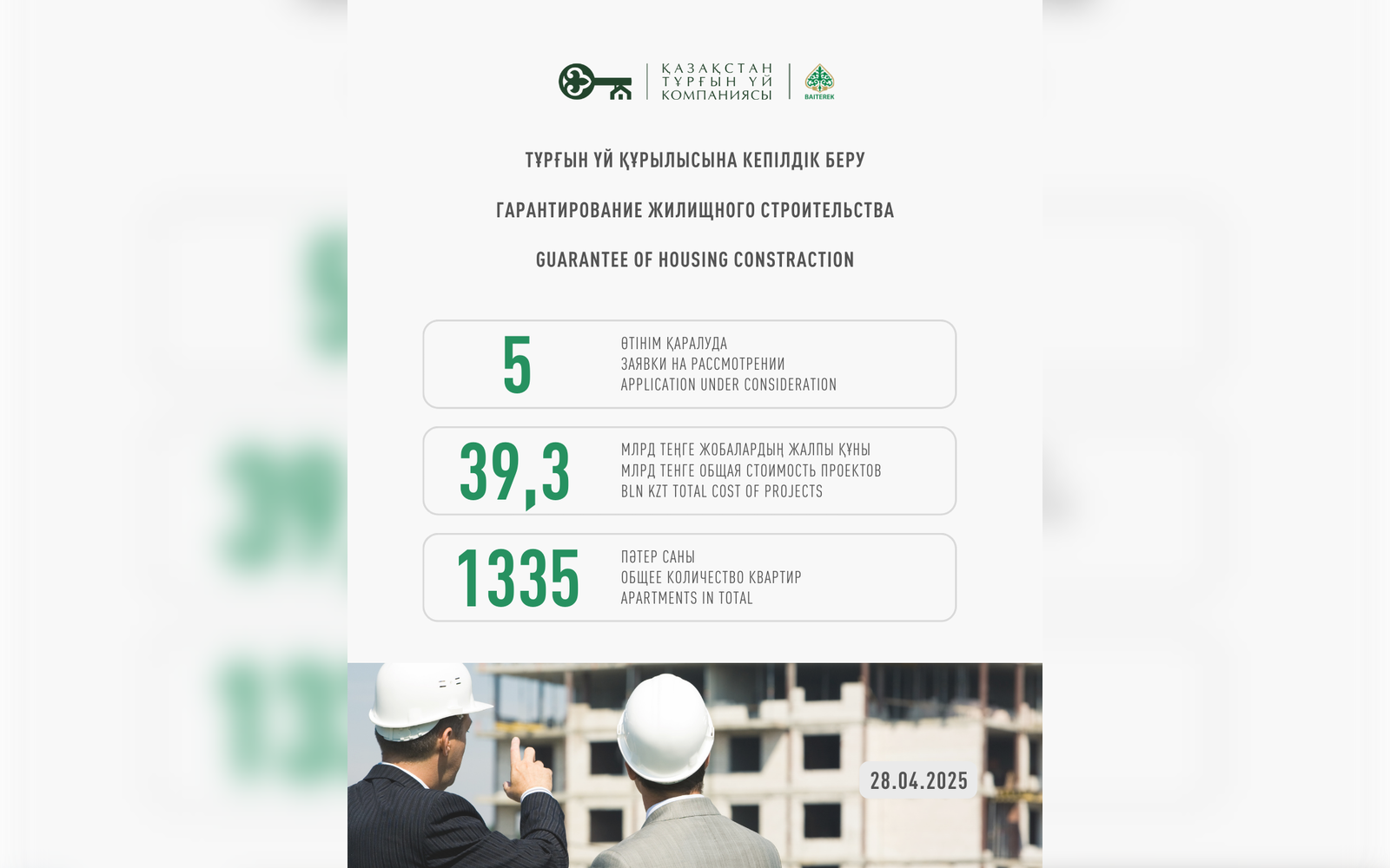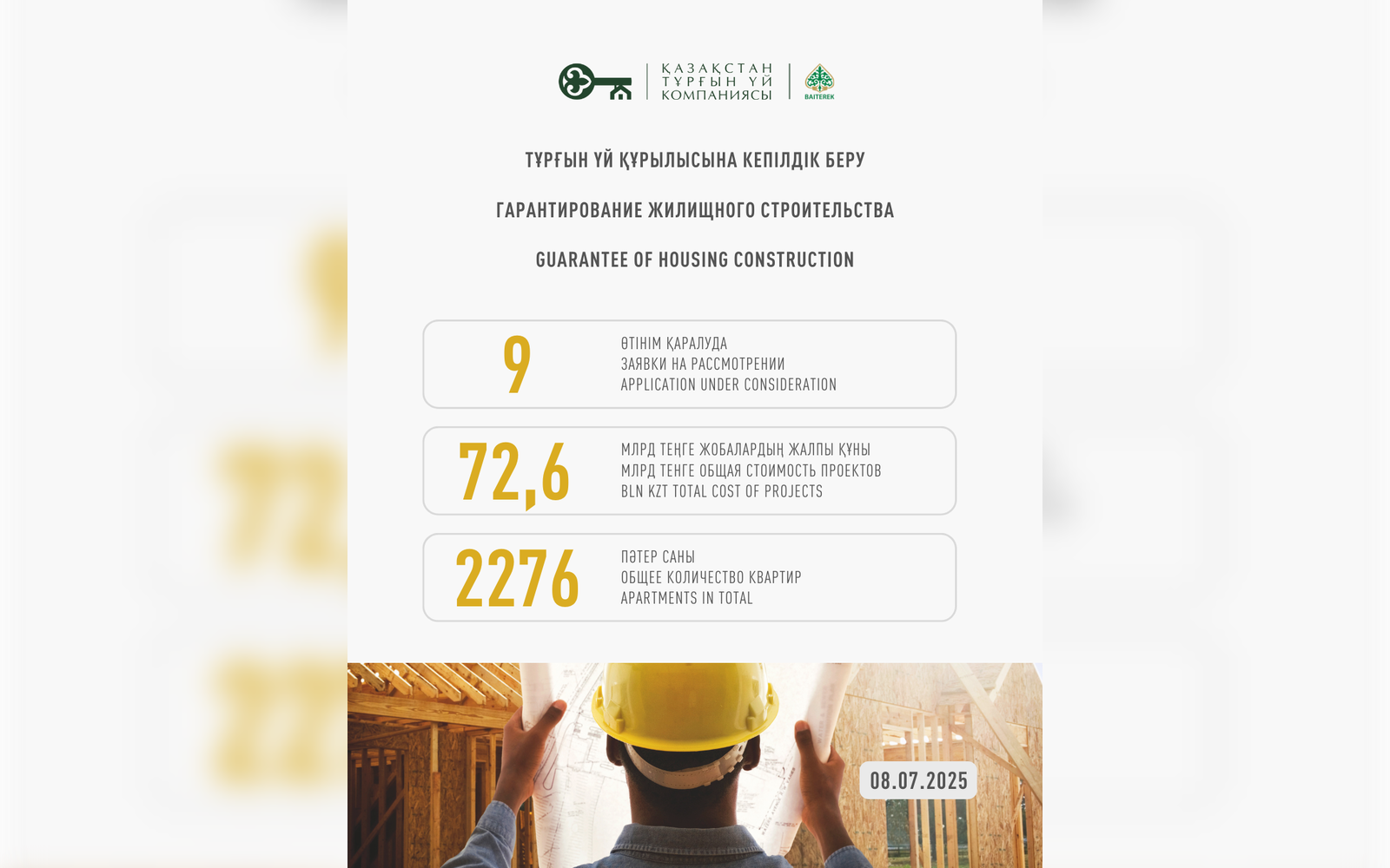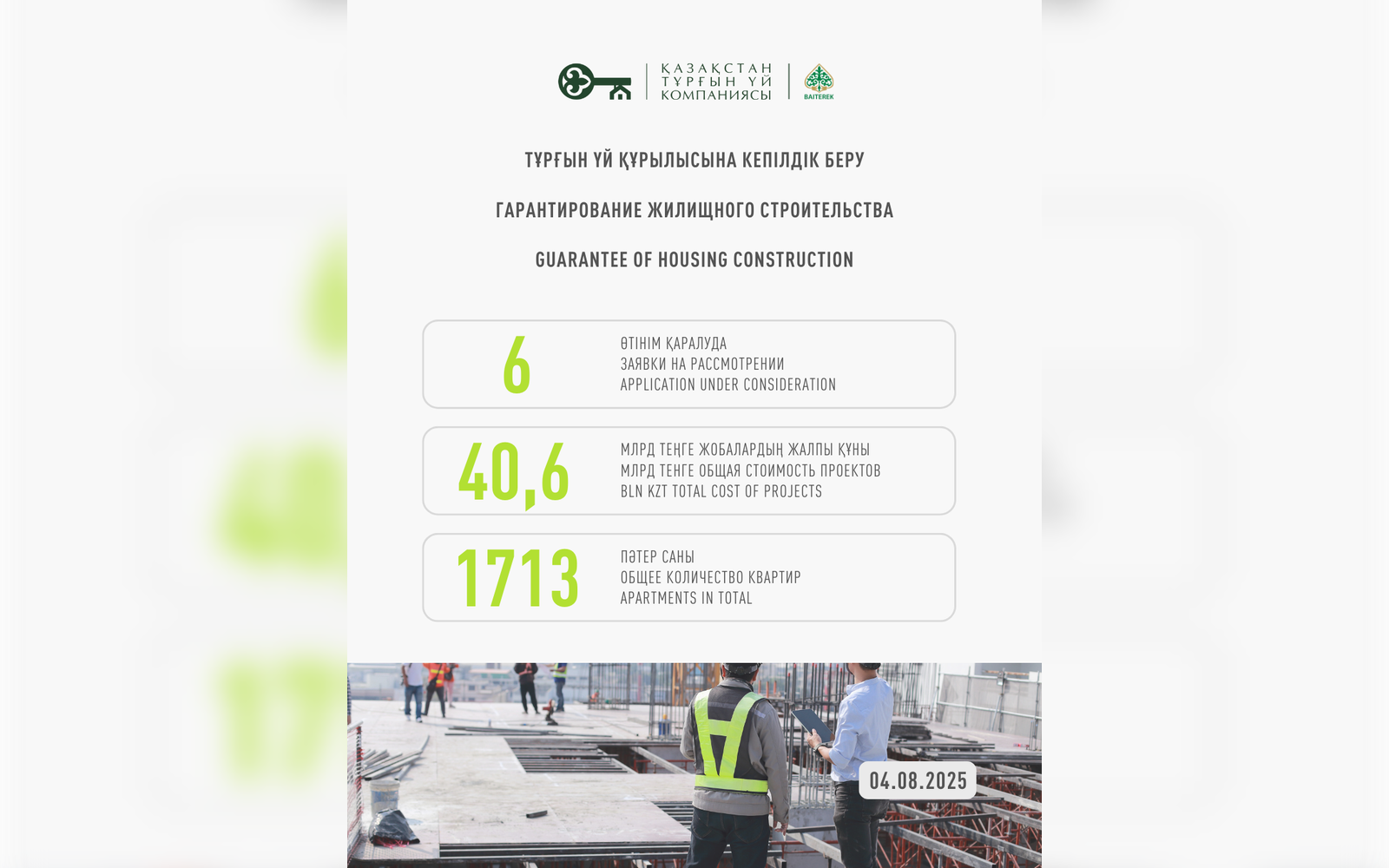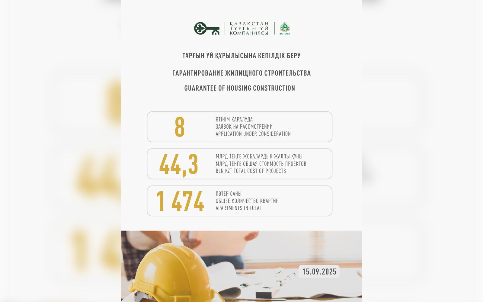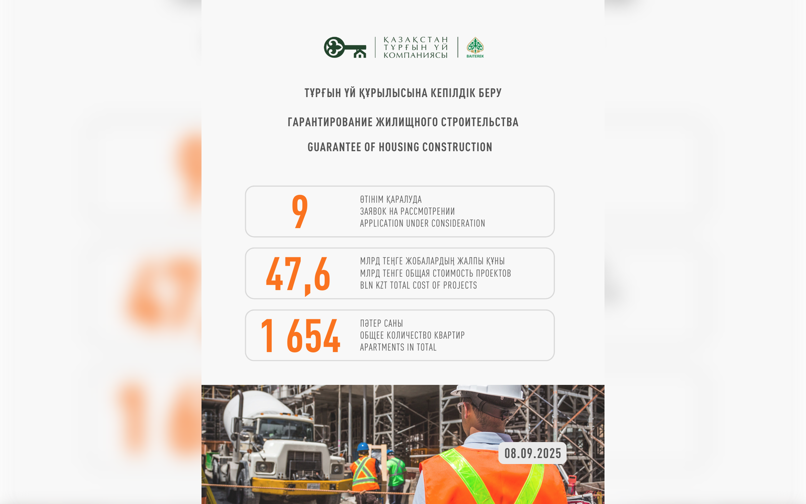 Казахстанская Жилищная Компания прогарантировала 252 проекта долевого участия в жилищном строительстве