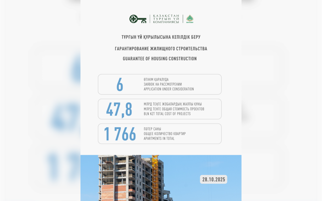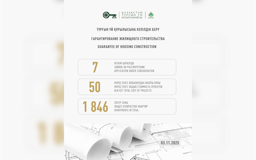На рассмотрении Единого оператора жилищного строительства находятся 7 заявок по проектам общей стоимостью порядка 34,2 млрд тенге, общим количеством – 1 486 квартир. Информация по действующим гарантиям размещена на интернет-ресурсе www.khc.kz в соответствии с требованиями Закона РК «О долевом участии в жилищном строительстве». Информация по объектам долевого участия, получившим гарантию и разрешение на привлечение средств дольщиков, …