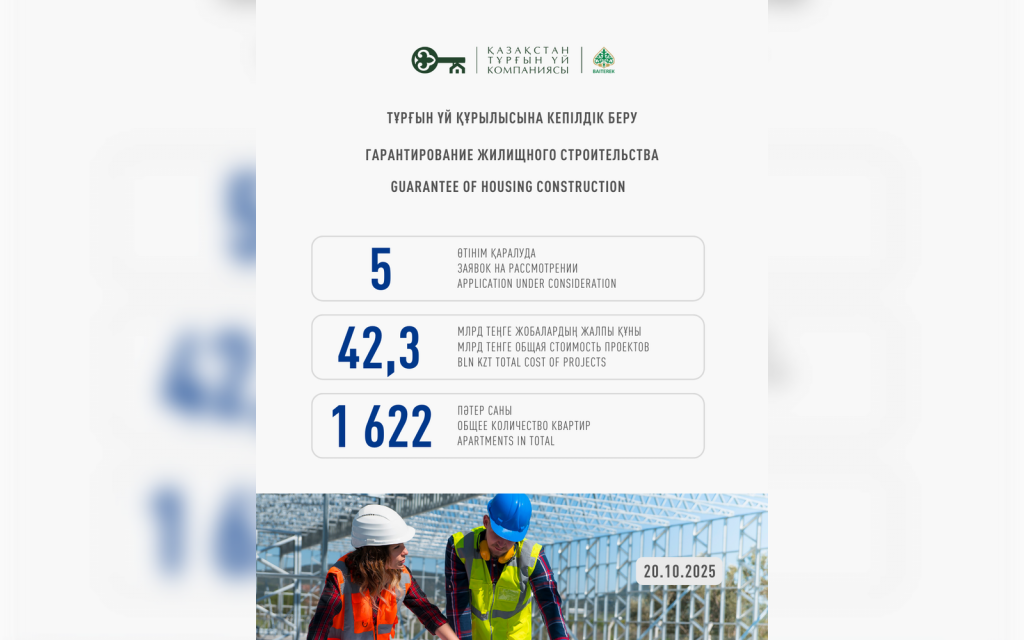 На рассмотрении Единого оператора жилищного строительства находятся 5 заявок по проектам общей стоимостью порядка 42,3 млрд тенге, общим количеством – 1 622 квартиры. Информация по действующим гарантиям размещена на интернет-ресурсе www.khc.kz в соответствии с требованиями Закона РК «О долевом участии в жилищном строительстве». Информация по объектам долевого участия, получившим гарантию и разрешение на привлечение средств дольщиков, …