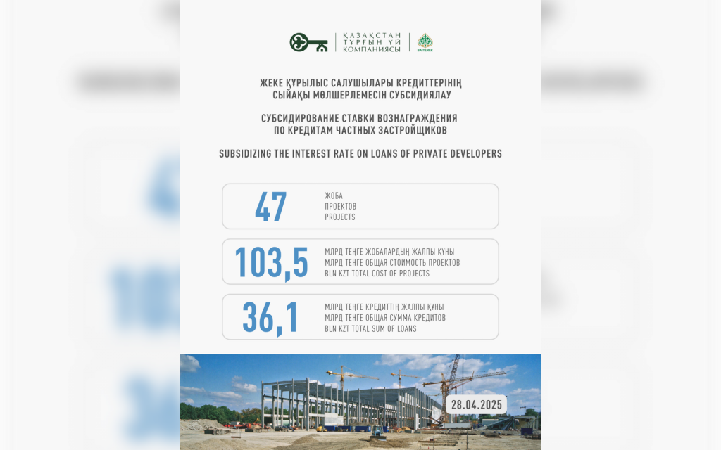 На рассмотрении Единого оператора жилищного строительства находятся 5 заявок по проектам общей стоимостью порядка 20,0 млрд тенге, общим количеством – 860 квартир. Информация по действующим гарантиям размещена на интернет-ресурсе www.khc.kz в соответствии с требованиями Закона РК «О долевом участии в жилищном строительстве». Информация по объектам долевого участия, получившим гарантию и разрешение на привлечение средств дольщиков, предоставлена …